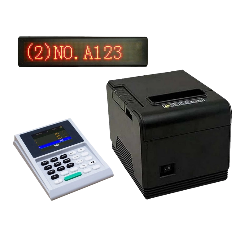 เครื่องพิมพ์คิว 1 ปุ่มกด, Caller 1 ตัว, ป้ายแสดงผล 1 ป้าย, ราคาไม่รวมลำโพงต่อพ่วง, ใช้กระดาษคิว 80mm, มีเสียงเรียกภาษาไทย