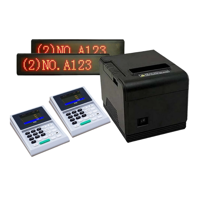 เครื่องพิมพ์คิว 1 ปุ่มกด, Caller 2 ตัว, ป้ายไฟ 2 ป้าย, ราคาไม่รวมลำโพงต่อพ่วง, ใช้กระดาษคิว 80mm, มีเสียงเรียกภาษาไทย