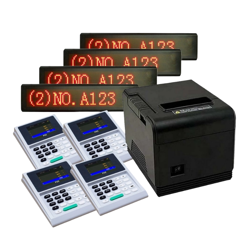 เครื่องพิมพ์คิว 1 ปุ่มกด, Caller 4 ตัว, ป้ายไฟคิว 4 ป้าย, ราคาไม่รวมลำโพงต่อพ่วง, ใช้กระดาษคิว 80mm, มีเสียงเรียกภาษาไทย
