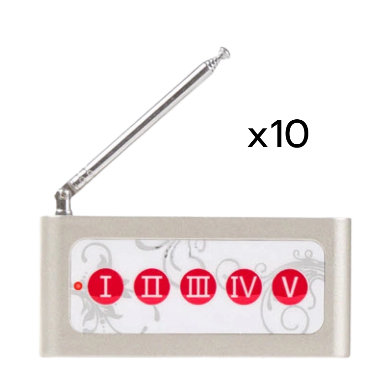 โหมดการมอดูเลชั่น ASK (AM), ความถี่ 433 MHz, วัสดุ ABS, แหล่งจ่ายไฟ แบตเตอรี่ 12V 23V, กันน้ำ IPx3, น้ำหนัก 60 กรัม, ปุ่มกดโทร 10 ปุ่ม